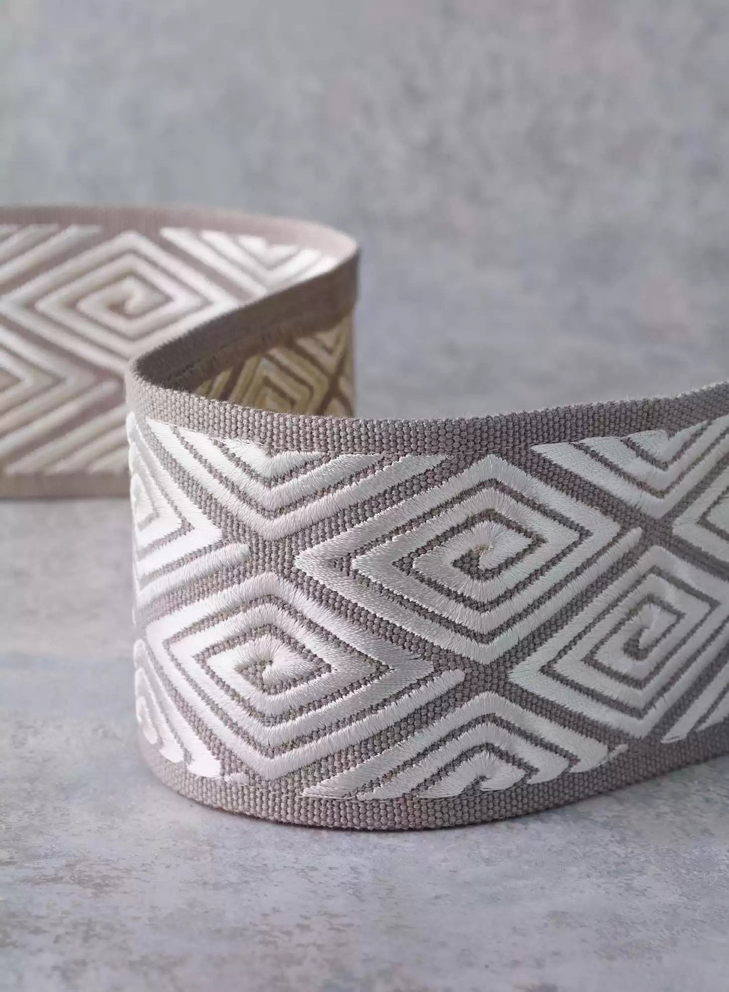 The D'Oyly Carte Braid is a decorative fabric trimming that measures about 9 centimeters wide. It's made from a soft blend of cotton and viscose and comes from the Savoy Braids collection by Osborne & Little. [split_description] Brand Osborne & Little Collection Savoy Braids...- $298.00