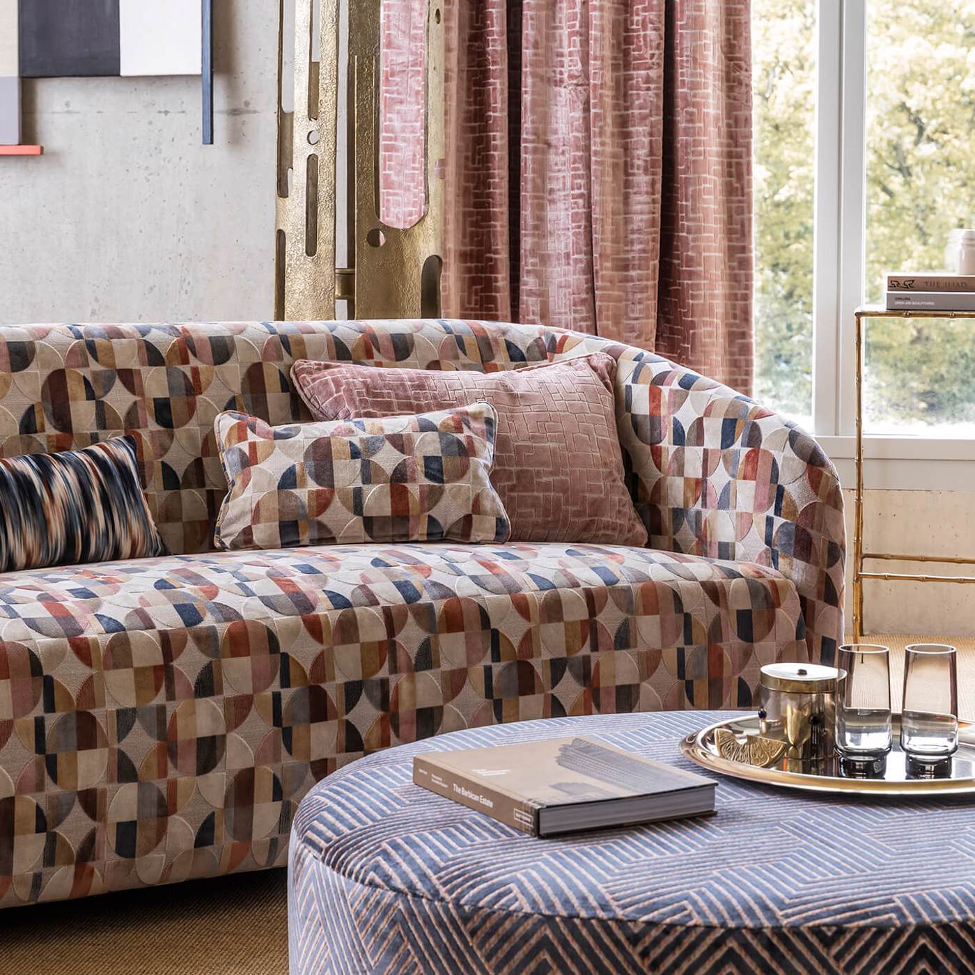 A bold, enticing design, Delaunay combines a variety of circular patterns in a striking array of colour combinations. Raised velvet shapes contrast against a woven ground highlighting the fabric's retro feel. Available in four colourways: Multi, Denim, Natural and Magenta/Peacock [split_description] Brand Clarke &...- $168.00