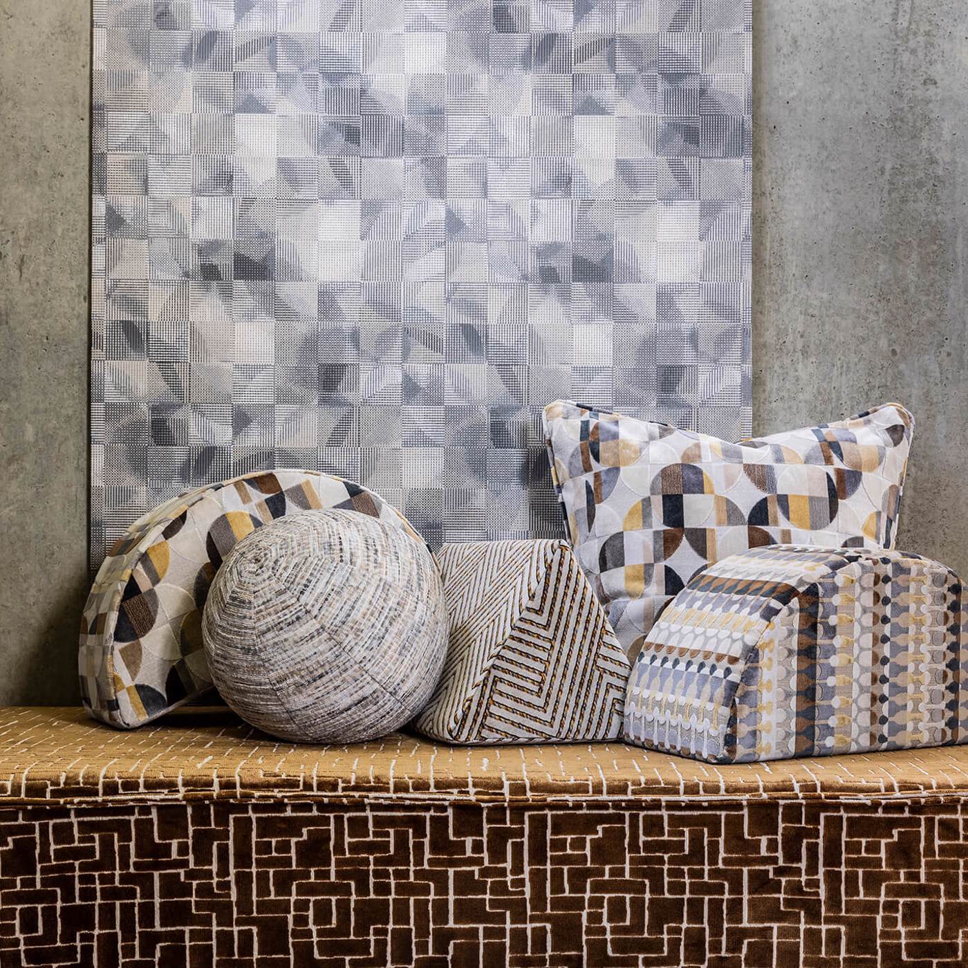 A striking woven velvet of interlocking zig zags, Grassetto is a contemporary design that looks fantastic on furniture. Raised edges framed with subtle, multicoloured stripe detail introduce a complementary palette, which can be used to bring any scheme together. Available in four colourways: Multi,...- $139.00