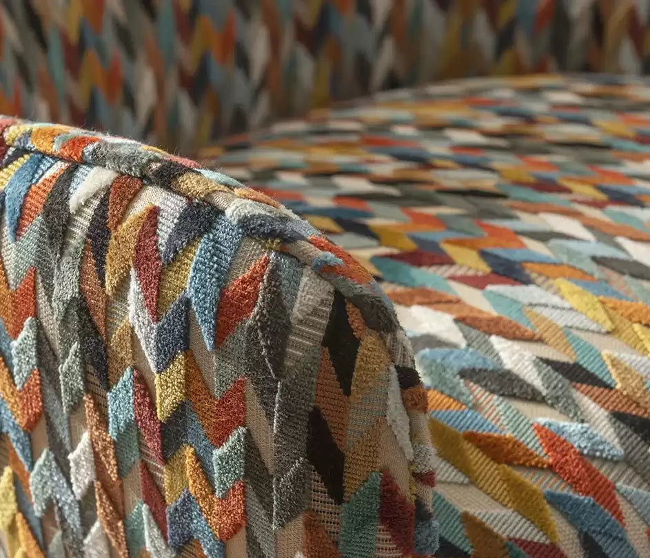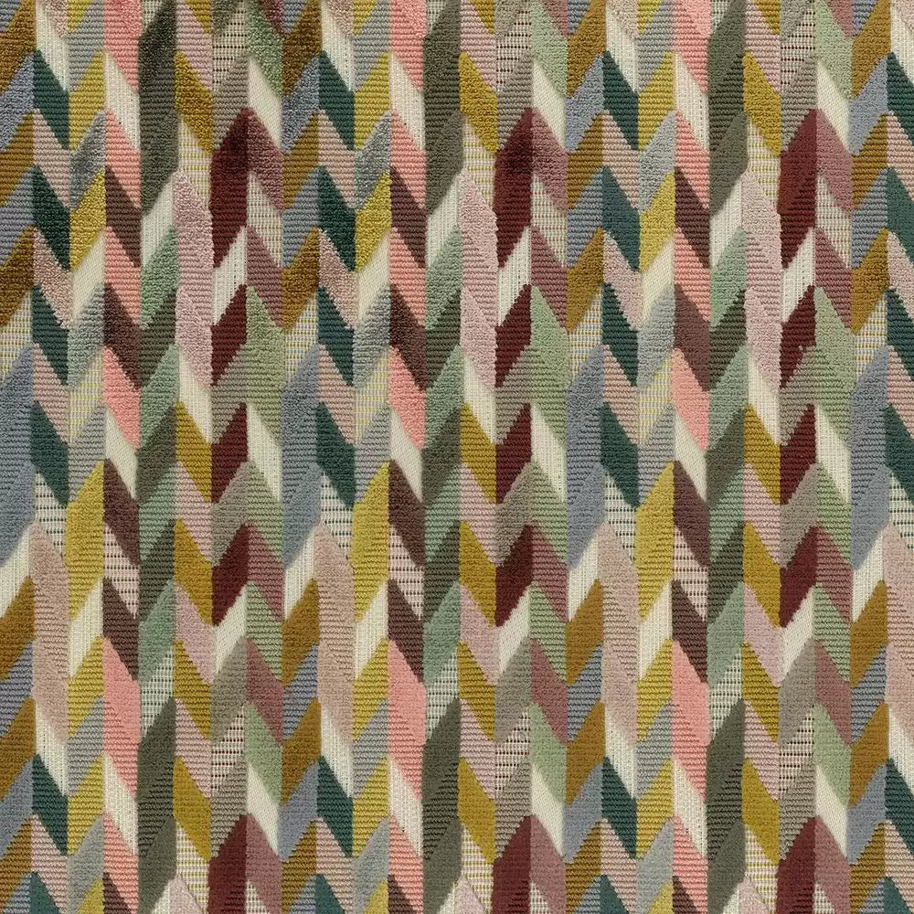 A multi-coloured cut and un-cut velvet chevron design is offered in three new colourways.