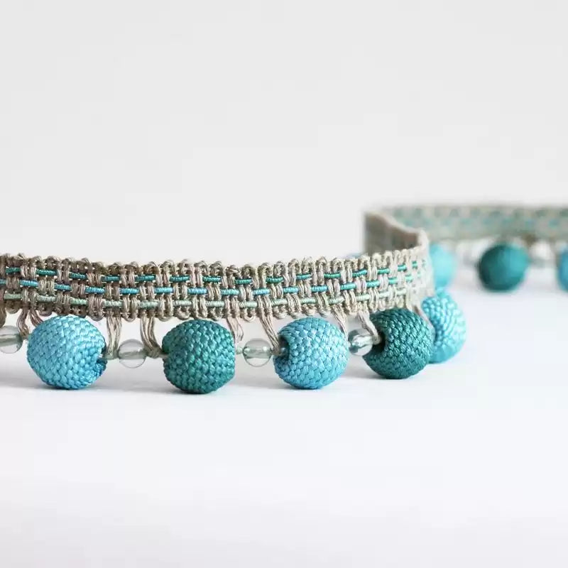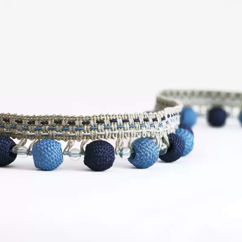A variety of unusual braids, cords and fringes featuring embroidery, knitted beads, ombre pleating and distressed metal coins to add the perfect finishing touch to contemporary Osborne Little fabrics especially those in the CORNICHE, CROISETTE and VERDANTA collections.