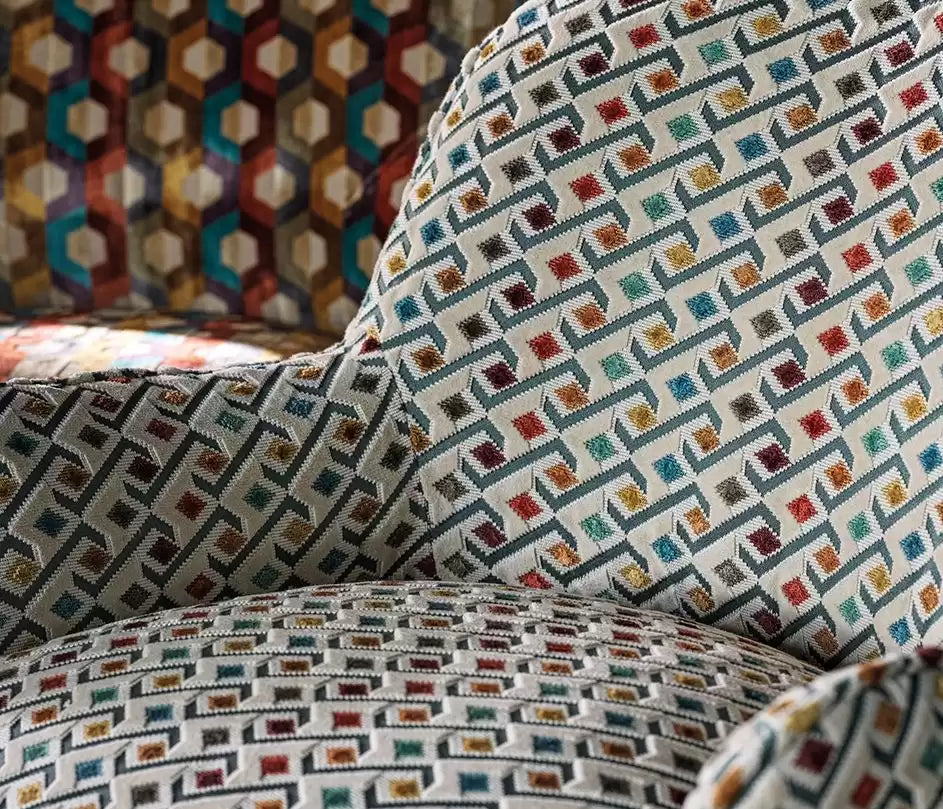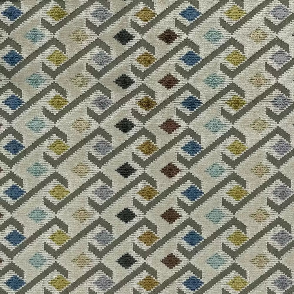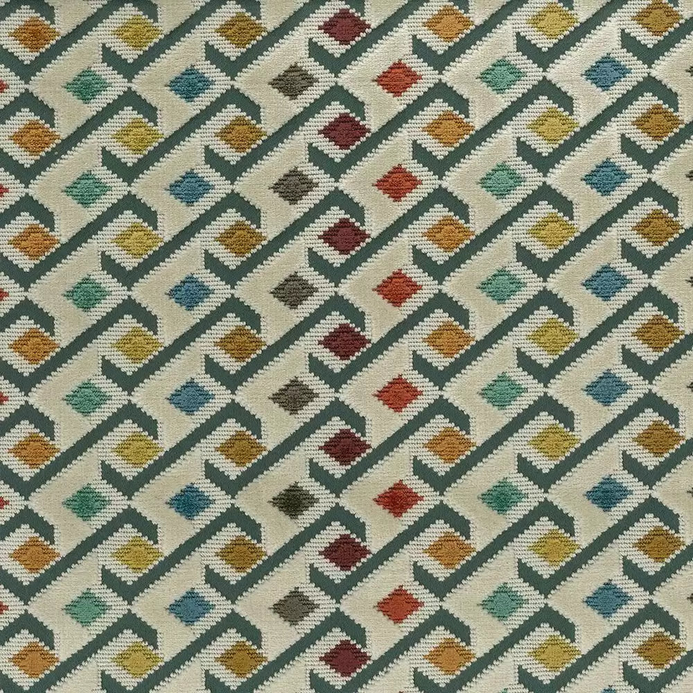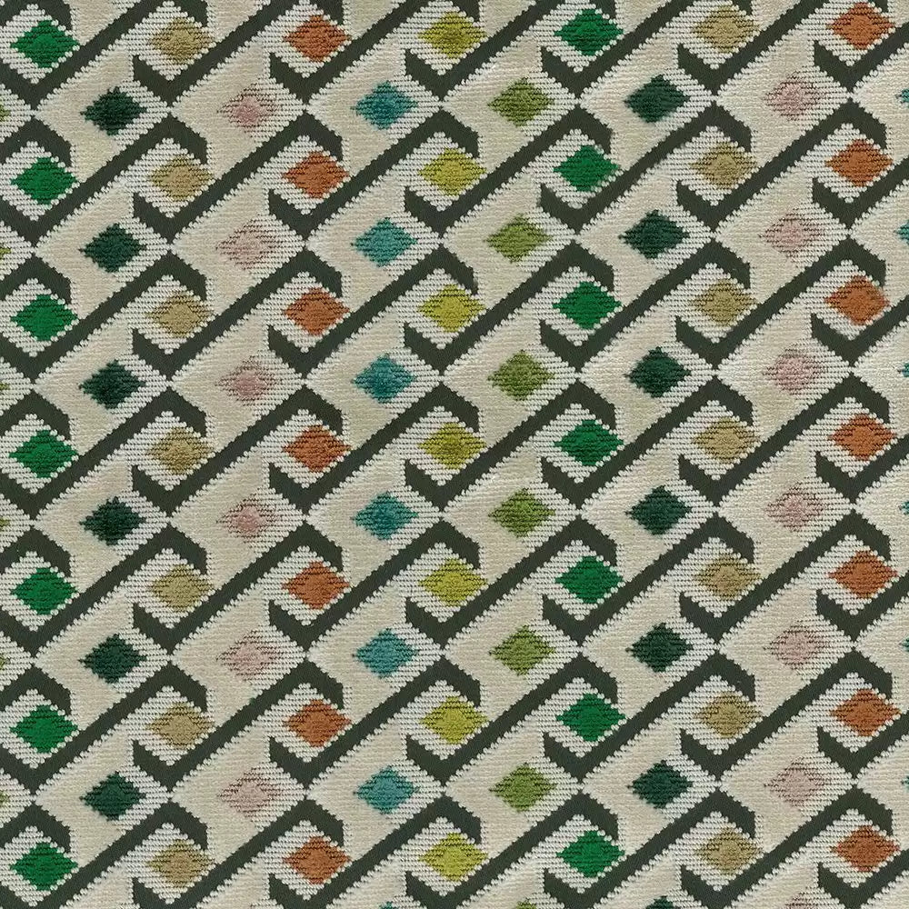 Multi-coloured diamonds in a diagonal design of cut and un-cut velvet.