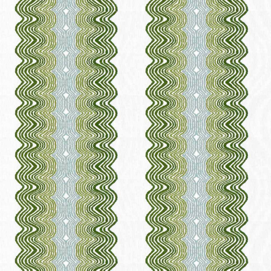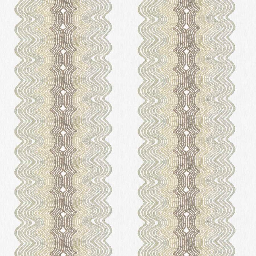 This beautifully embroidered fabric combines spun polyester and cotton-linen for durability and sophistication. Its contemporary stripe design and large-scale pattern make it perfect for bedding, drapery, and other decor, adding a refined, modern touch to any interior.