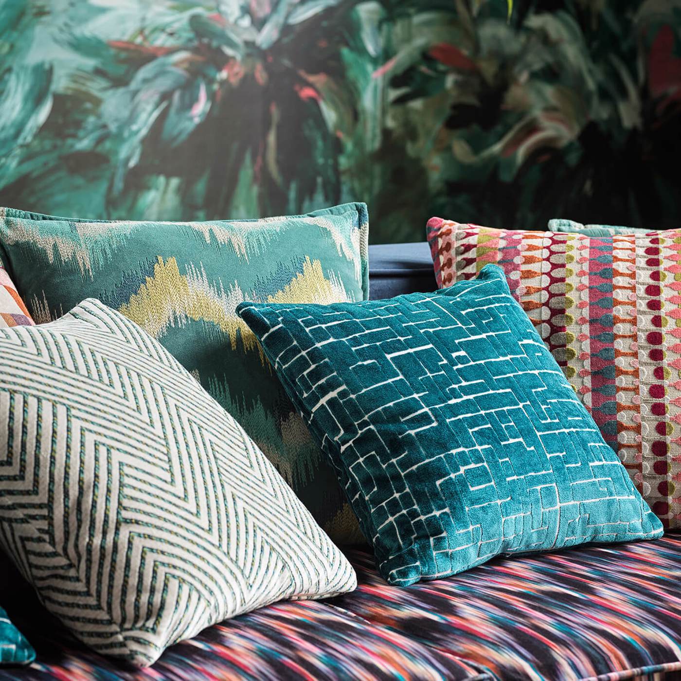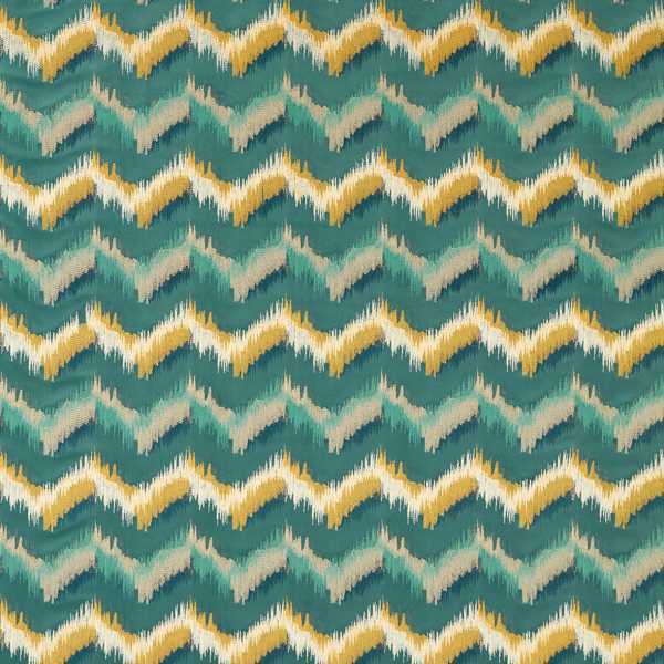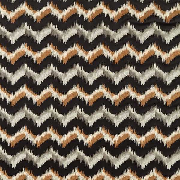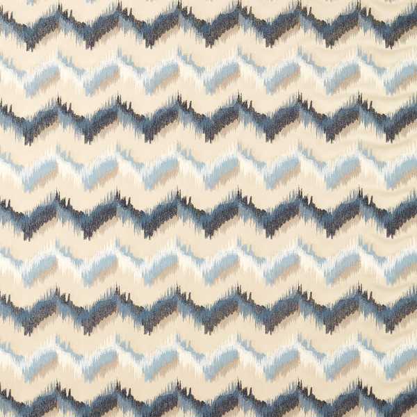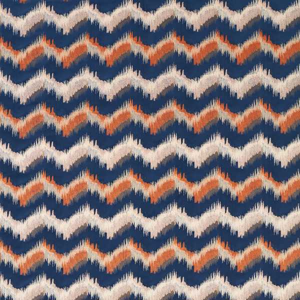 A tightly constructed chevron pattern with metallic yarns runs throughout Sagoma's tonal flame stitch design, which is intricately embroidered on to soft velvet to create an oversized stripe effect.
