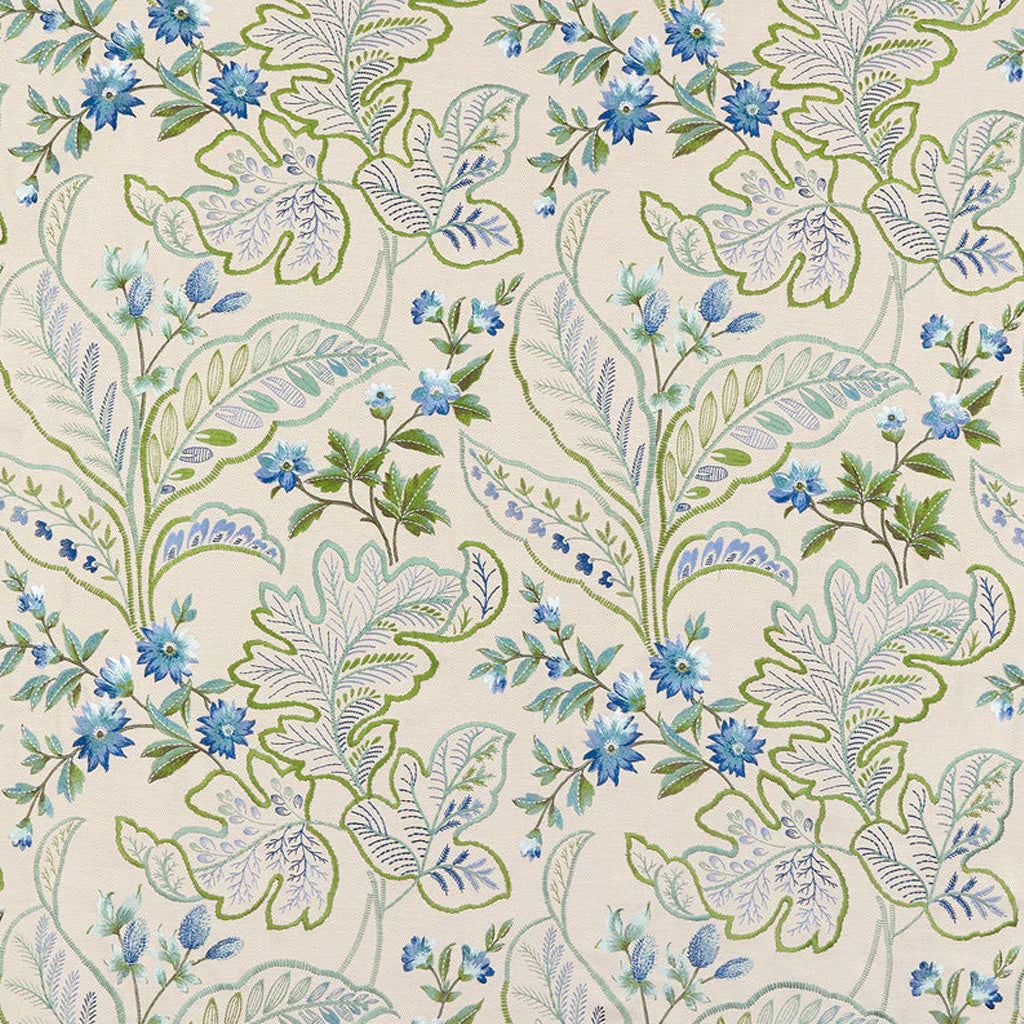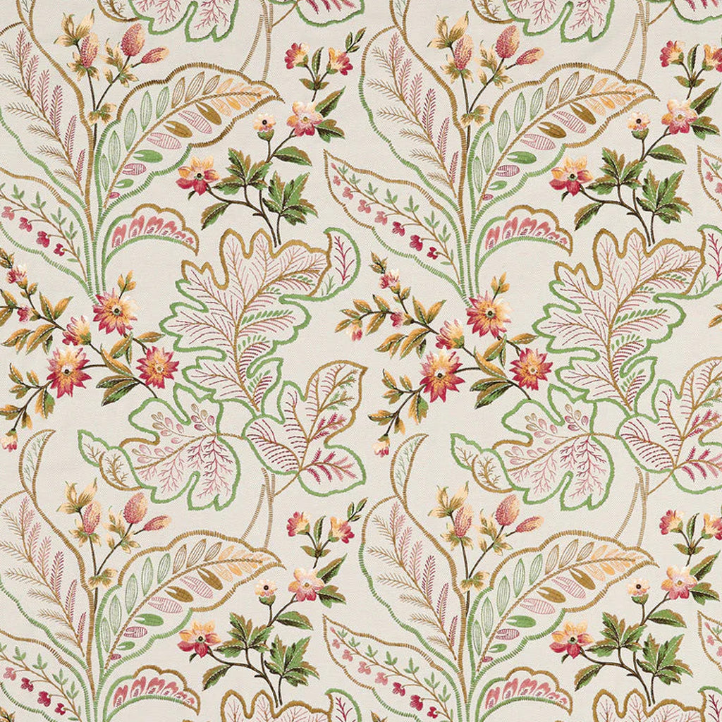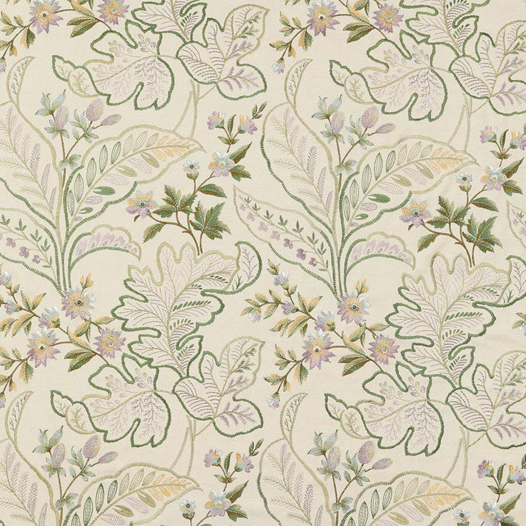 Large decorative acanthus leaves interspersed with flowers and leaves are embroidered on a herringbone ground.